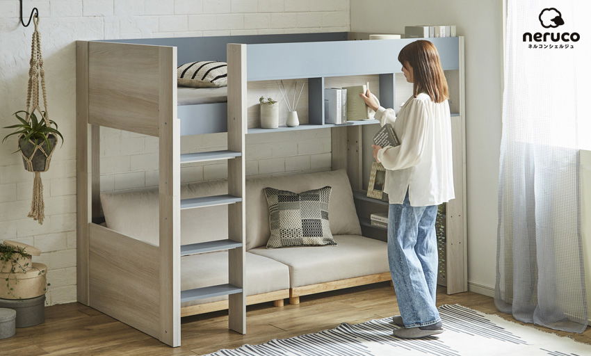 ロフトベッド下にできるスペースの「収納力」を重視したベッド。ベッド下に使いやすい収納をピッタリ収めました。高さ抑えめで、大きな家具にありがちなお部屋への圧迫感も軽減。
