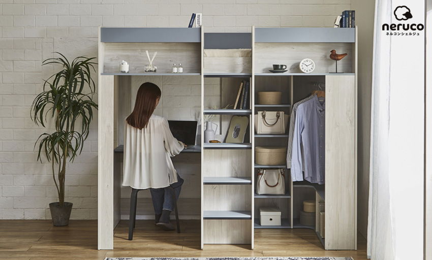 上段ベッドの下にすっぽり収まる下段のベッドは収納や彼氏のお泊り用など自由な使い方ができます。