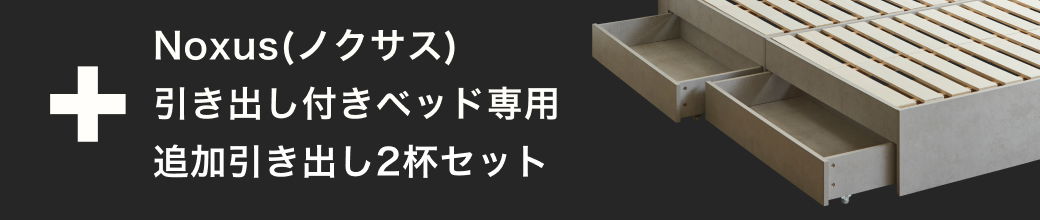| 商品説明 | お部屋にやさしくなじむモルタル調デザインの照明付きフロアベッド「ノクサス」に、便利な収納力をプラスした引き出し付きタイプが登場。標準セットには引き出しが2杯付いており、衣類やリネンをすっきり収納できます。さらに、オプションで引き出しを4杯に増やせば、大容量の収納ベッドとして活躍します。 ヘッドボードの宮棚にはUSBポートとコンセントを搭載し、スマートフォンの充電や間接照明の使用にも便利。優しい灯りのLED照明がリラックスタイムを心地よく演出します。通気性に優れたすのこ仕様で、オールシーズン清潔かつ快適にお使いいただけます。サイズはシングル・セミダブル・ダブル・クイーン・キングの5種類をラインナップ。 |