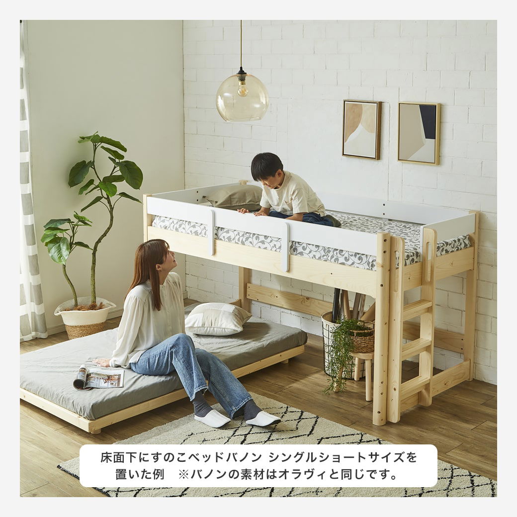 商品説明 | 当社オリジナルの木製ロフトベッド「オラヴィ」 異なるカラーを組み合わせた明るく楽しいデザインでお部屋をパッと華やかに演出します。 お気に入りの空間で過ごすことで、自立心を育み、毎日の学習時間もより楽しくなるはず。シンプルなデザインのため、大人の一人暮らしやワンルームにもマッチします。 安全面にもこだわり、角を丸く加工した安心設計。小さなお子さまが使ってもケガの心配を減らし、親御さんも安心です。 さらに、頑丈な構造で長く使える耐久性を備えているので成長期のお子さまにもおすすめ。 スペースを有効活用できる省スペース設計の垂直ハシゴは、子供部屋や一人暮らしのお部屋でもすっきり。ベッド下は収納やデスクスペースとして活用できるので、限られた空間を賢く使えます。 「子供 ロフトベッド」「キッズベッド」「一人暮らし ロフトベッド」をお探しの方に最適な一台です。 |