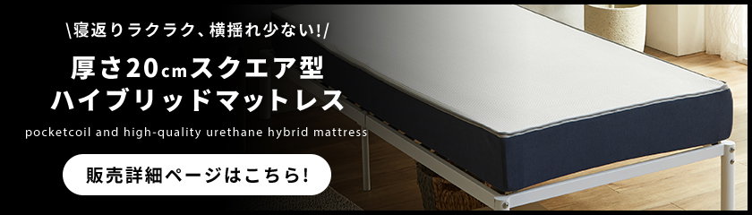 ■サイズ別関連リンク ベッドフレームのみ セミシングル ネルコZマットレスセット セミシングル / シングル バリューマットレスセット セミシングル / シングル ハイブリッドマットレスセット シングル ハイブリッドマットレス・トッパーセット シングル ■関連リンク 8cm厚ポケットコイルマットレストッパー 20cm厚ハイブリッドマットレス オールウレタンファミリーマットレス | |